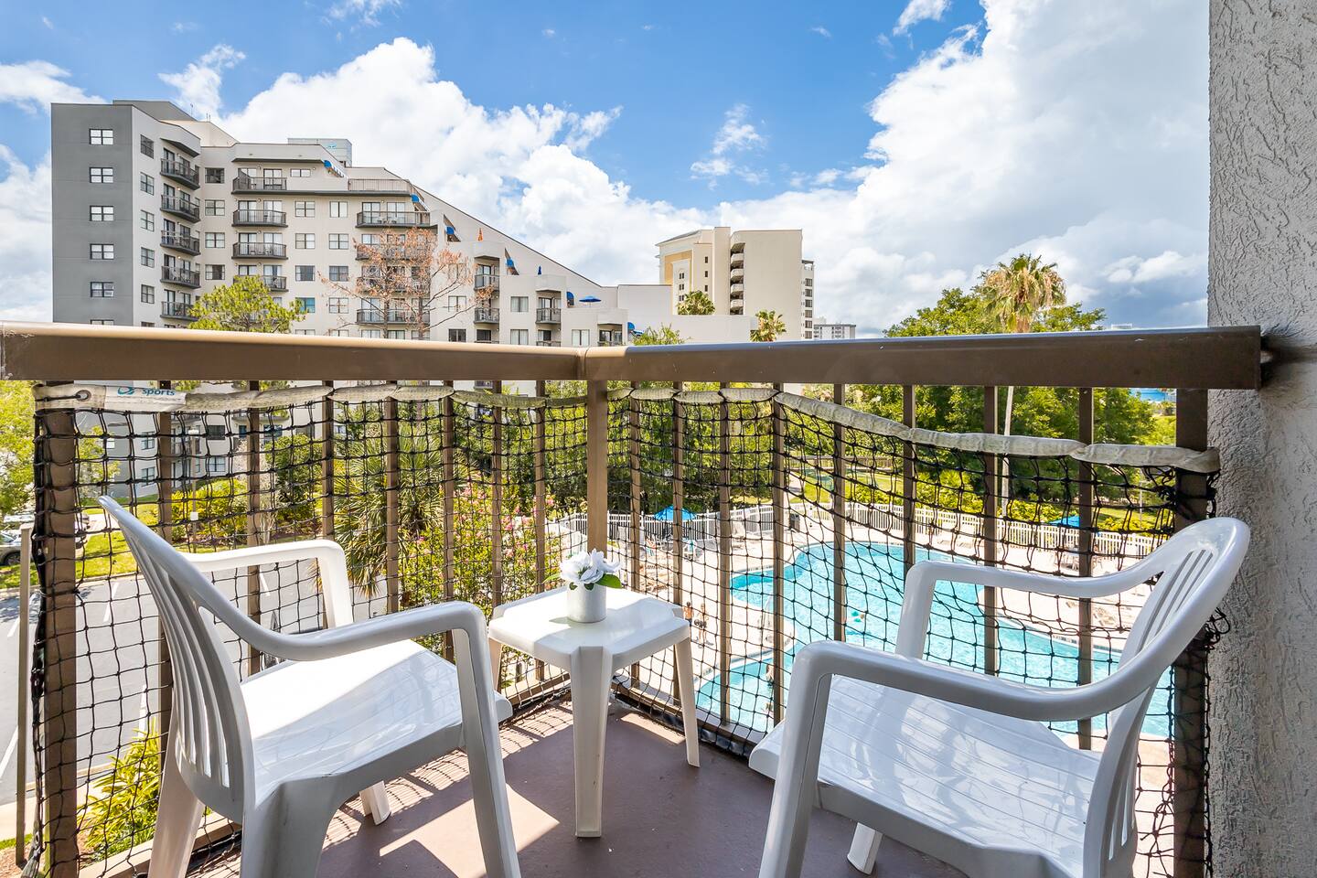 The space - The resort has 2 outdoor pools and 1 indoor pool with temperate water. - Laundry is inexpensive. - Our check-in time is any time after 4:00 PM. - Our check-out time is any time before 11:00 AM. Guest access - FREE OPEN PARKING. - Guests can enjoy 2 outdoor pools and a Jacuzzi and an indoor pool. With temperate water. - Fitness center - Tennis court - Martkplace restaurant - Hot tub Other notes: - Unfortunately, our space is not suitable for pets.