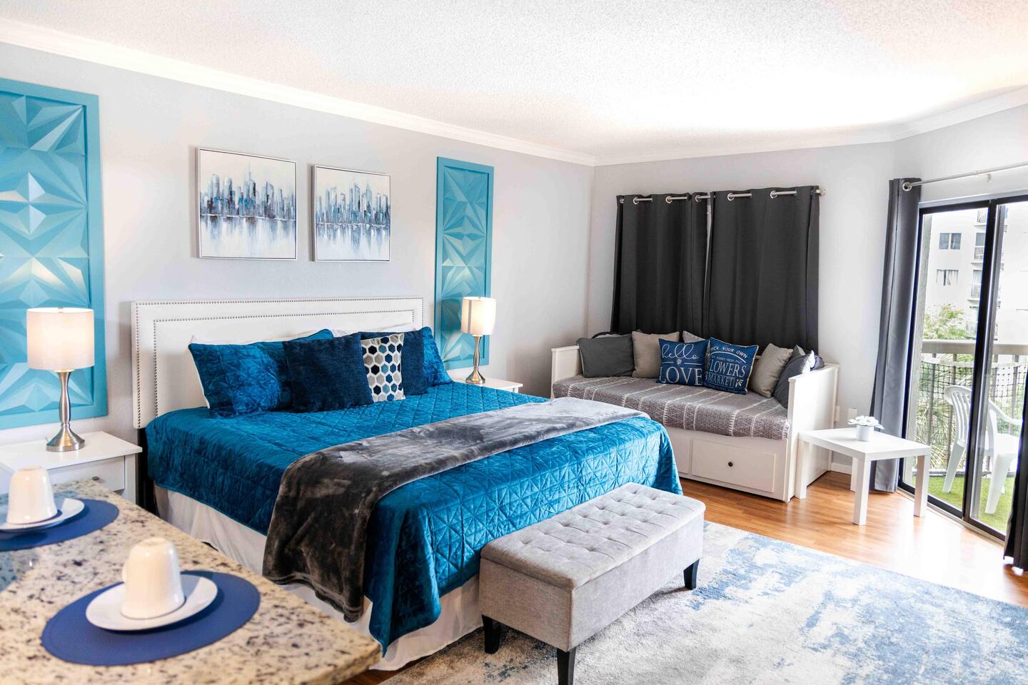 WELCOME to this newly renovated studio, centrally located minutes from Universal Studios and walking distance to I-drive. Very close to Premium Outlets, SeaWorld, Convention Center and everything you may need such as shopping and restaurants. Modern and cozy, it has a balcony with a peaceful view and is fully equipped with new appliances and furniture. This 1BDR-1BTHR accommodates up to 4 people. You can also enjoy the amenities within this building such as swimming pools, gym, playground for children and much more.