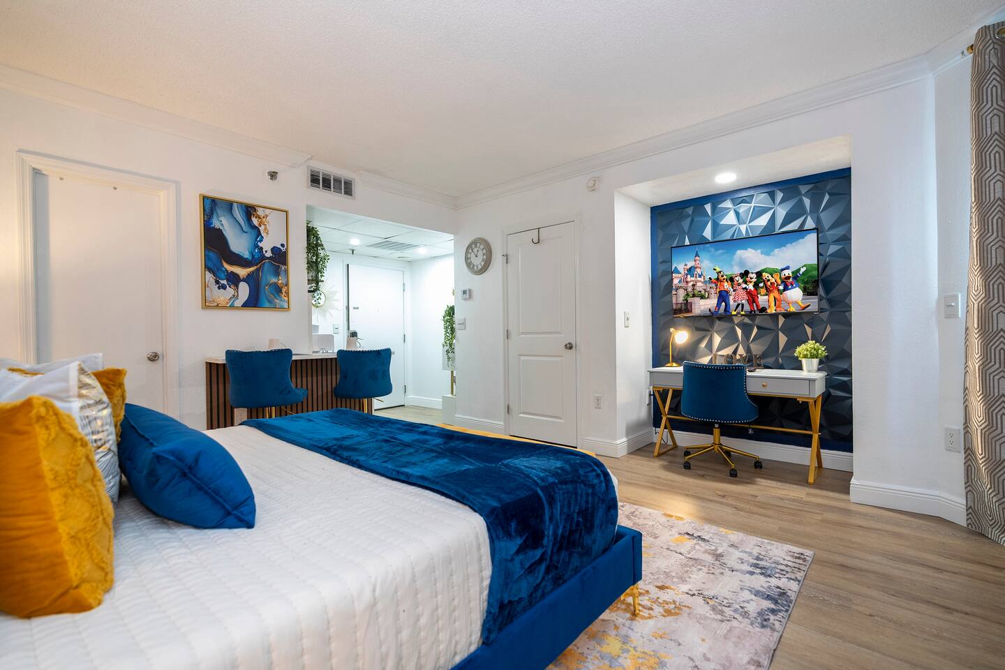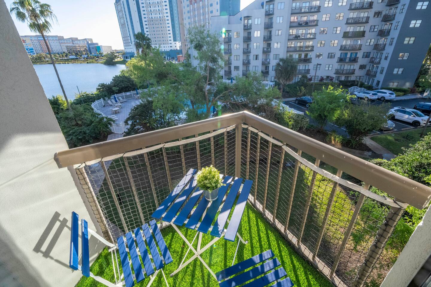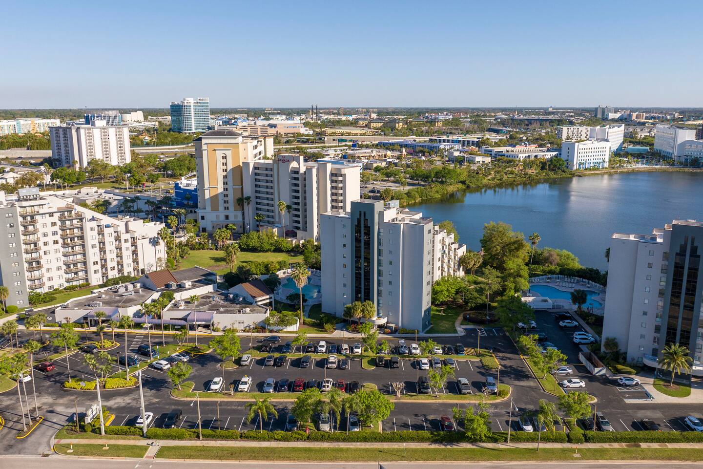 ✨Around 5 minutes from Universal and Epic Universe 🏝 Stunning lake and pool views 🍳 Full kitchen + workspace 🛏 Luxury Super King bed and confort sofa bed up to 4 👶🏻 Extra crib for a baby 🚗 Free on-site parking 💙 Renovated studio, decorated with comfort in mind 🫕 a lot Restaurants and shops a short walk away * It's close to International Drive, near major attractions, restaurants, and shops. Located just 5 minutes from Universal Studios/Epic Universe and few minutes from Disney Parks.