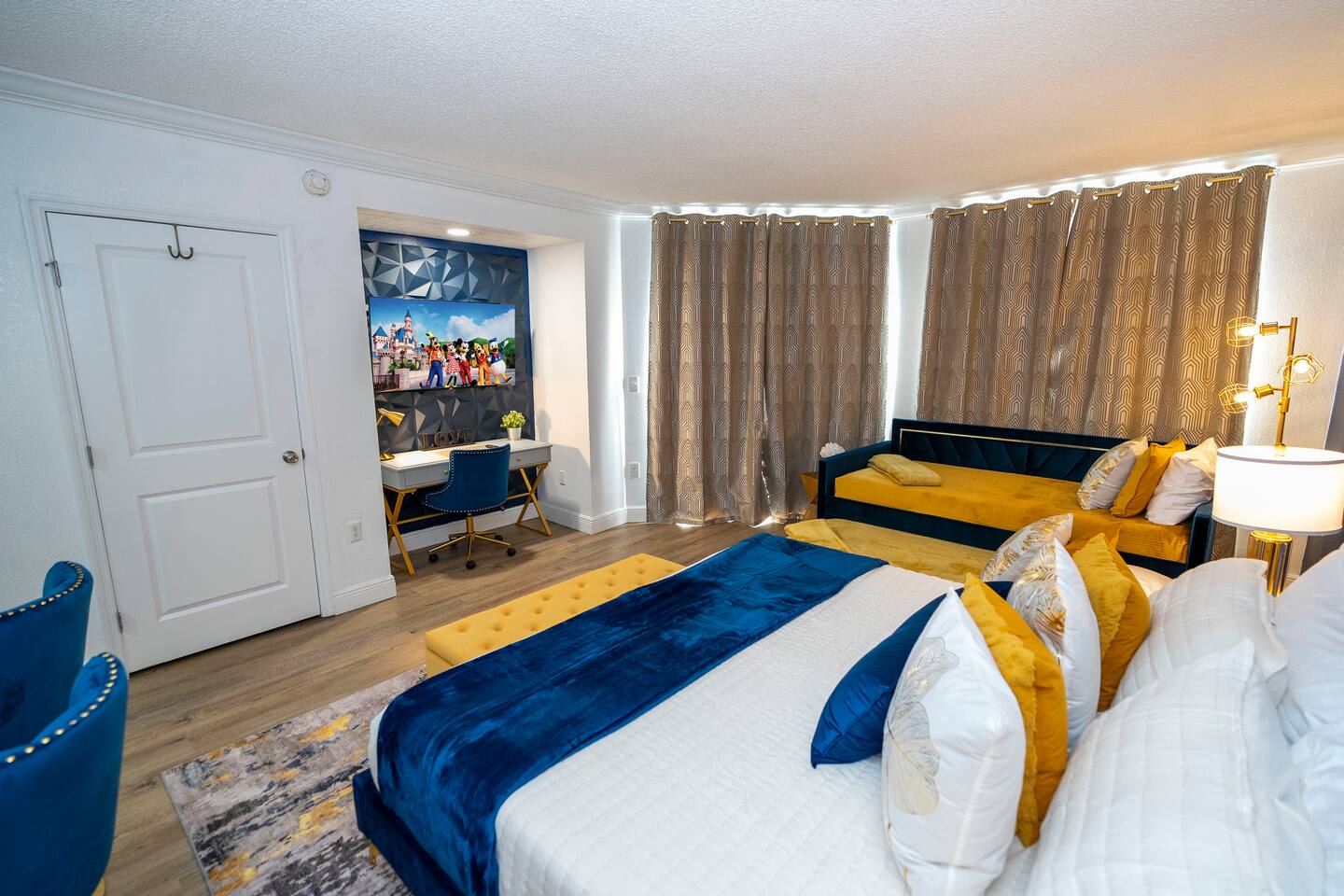 💫Refined new renovated for up to 4 people: • Located on the 4th floor overlooking the serene Big Sand Lake, the resort's sparkling pool •• Inside, relax on a brand-new, luxurious king-size mattress. and sofa bed for 2 people, this studio comfortably accommodating up to 4 people. • A full kitchen offers accessibility for cooking with all the essentials. • Cable TV, plus your favorite streaming channels, plus free high-speed Wi-Fi for streaming, remote work, or connecting. Resort Amenities 🌴 You will enjoy all the advantages of a resort, including: • Two large heated outdoor pools • Heated indoor pool and spa • Fitness center • Illuminated tennis court 🔐 Security and Convenience • 24-hour on-site security with regular patrols for your peace of mind • Secure access with a required code for the property and common areas • Free on-site parking located directly in front of the building Location Highlights 📍 🎡 Universal Orlando Resort: ~2.0-3.0 miles 📍 Orange County Convention Center: ~2.3 miles ✈️ Orlando International Airport (MCO): ~11.5 miles 🎡ICON Park – 1.9 miles 🍟World’s Largest McDonald’s 1.3 miles 🎢 Magic Kingdom (Disney World): ~13-15 miles 🏬Orlando International Premium Outlets – 1.4 miles 🏟️ Camping World Stadium – 6.9 miles 🏅 ESPN Wide World of Sports: 15.2 miles 🚶♀️ Within walking distance of restaurants, shops, and attractions on International Drive
